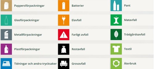 Här är några av symbolerna som du finner på sopkärlen.